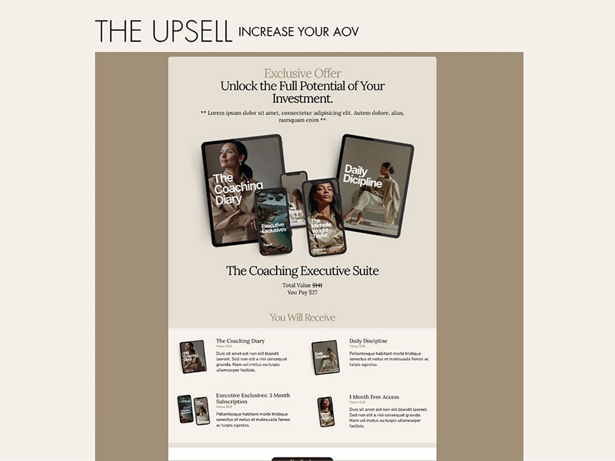• Full Sales Funnel (11 Step Pages). A strategic sequence including Link in Bio, Opt-in, Tripwire, Upsell, and Course Sales pages to maximize your revenue.